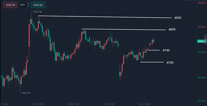 支撑关注4680-4700一线,强支撑4650附近,回调至支撑区间可分批布局多单;阻力关注4790-4800区域,首次触及可轻仓试空,若有效突破4800关口,可顺势加仓多单,看高至4850附近。